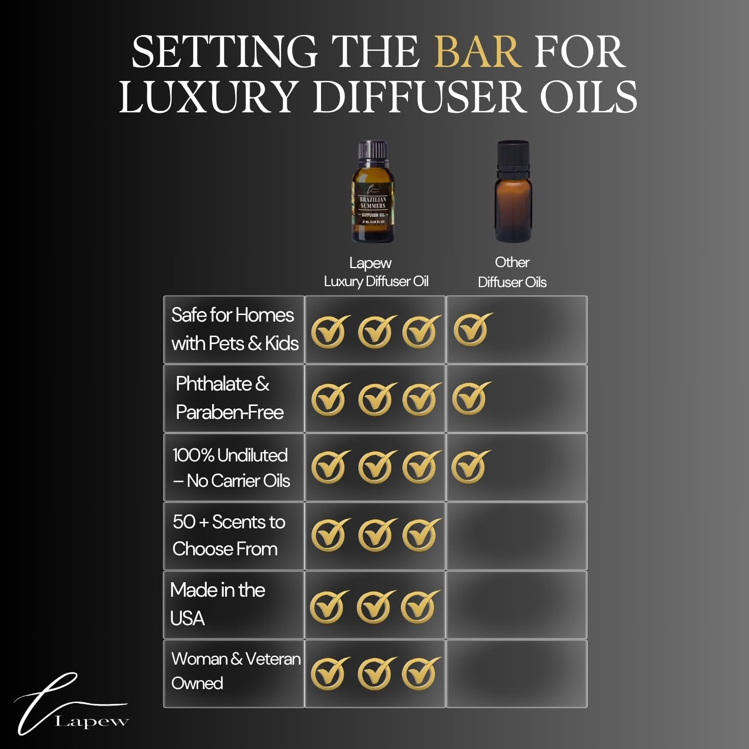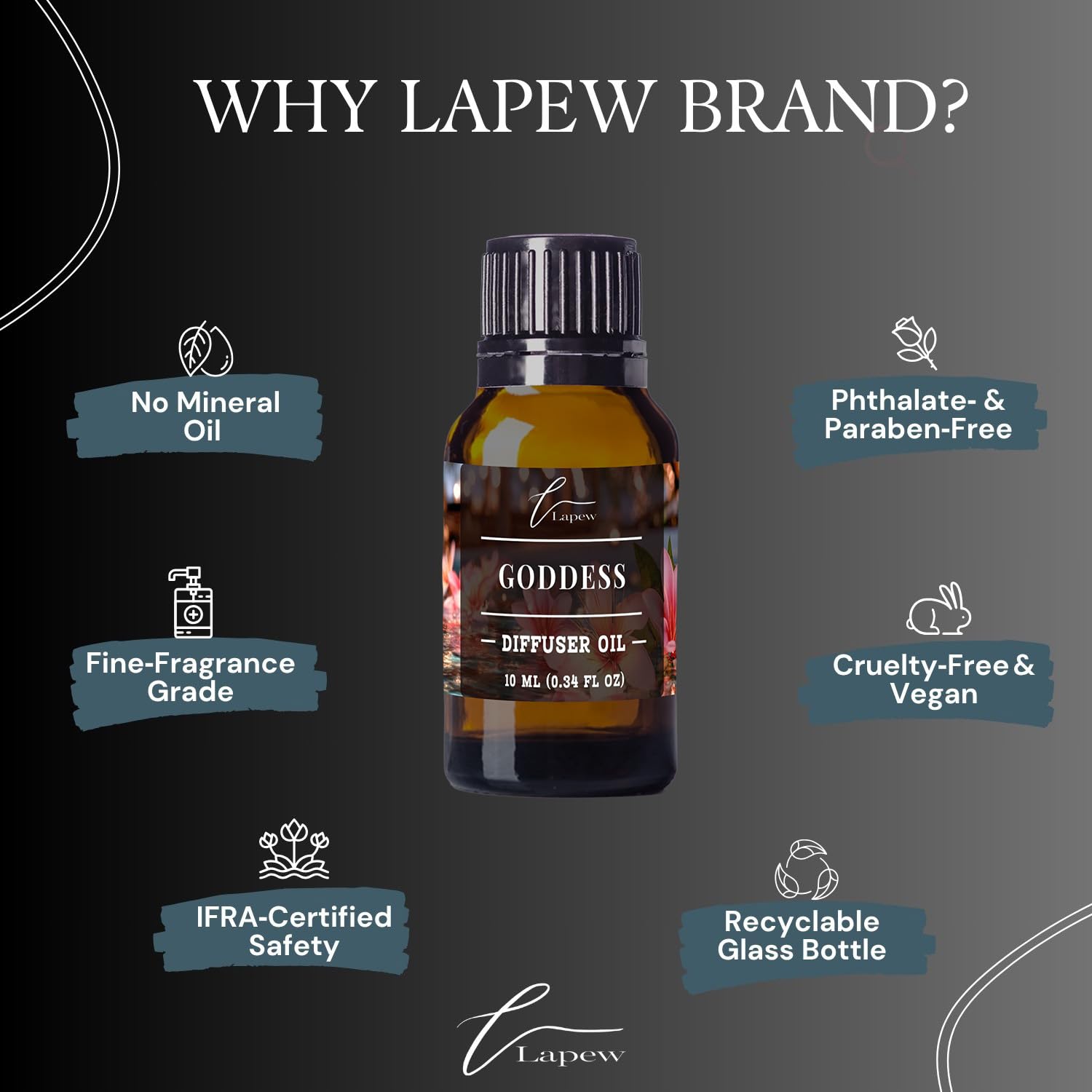 Lapew diffuser oils are crafted for those who appreciate fragrance without compromise. Each bottle is 100% pure, undiluted fragrance oil with no fillers, carriers, or water — designed to deliver a rich, true-to-scent experience through your waterless, nebulizer, or cold air diffuser system. Because our oils are fully concentrated, only a few drops are needed to fill a room with consistent, lasting fragrance for up to 30 days. Scent is intentionally layered and refined — noticeable without being overwhelming, creating an inviting atmosphere in any space. Safe to use around pets and family, and formulated without phthalates or harsh chemicals. Not compatible with ultrasonic, reed, or water-based diffusers.