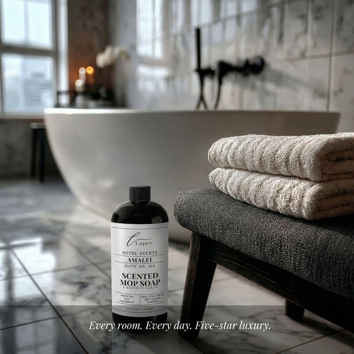 Cleans and Scents Simultaneously — No Residue, No Streaks: Unlike traditional floor cleaners that leave behind a harsh chemical smell, this premium concentrated formula cleans deeply while releasing a beautiful luxury hotel fragrance as floors dry. As the scent fades it signals your floors are clean and dry — continue the ritual with Step 3 Diffuser Oil and Step 4 Room & Linen Spray for lasting whole-home fragrance.