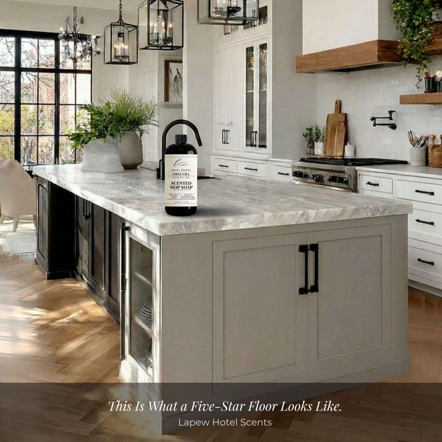 Step 1 of 4 in The Lapew Home Scent Ritual — start your whole-home scent experience with this luxury mop soap. Add ¼ cup per gallon of warm water and mop slowly, allowing the fragrance to bloom as floors dry. Follow with Step 2 Carpet Deodorizer, Step 3 Diffuser Oil, and Step 4 Room & Linen Spray for the complete five-star hotel experience.