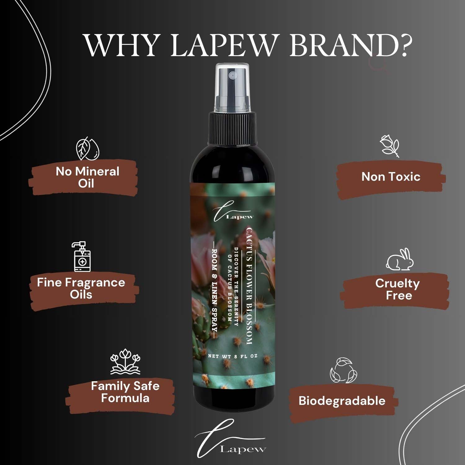 Elevated Home Fragrance: Lapew Cactus Flower Blossom, a refined room & linen spray and air freshener. Long-lasting, eliminates odors, freshens fabrics for an inviting home.