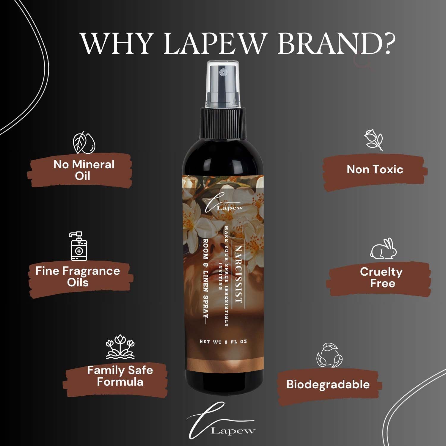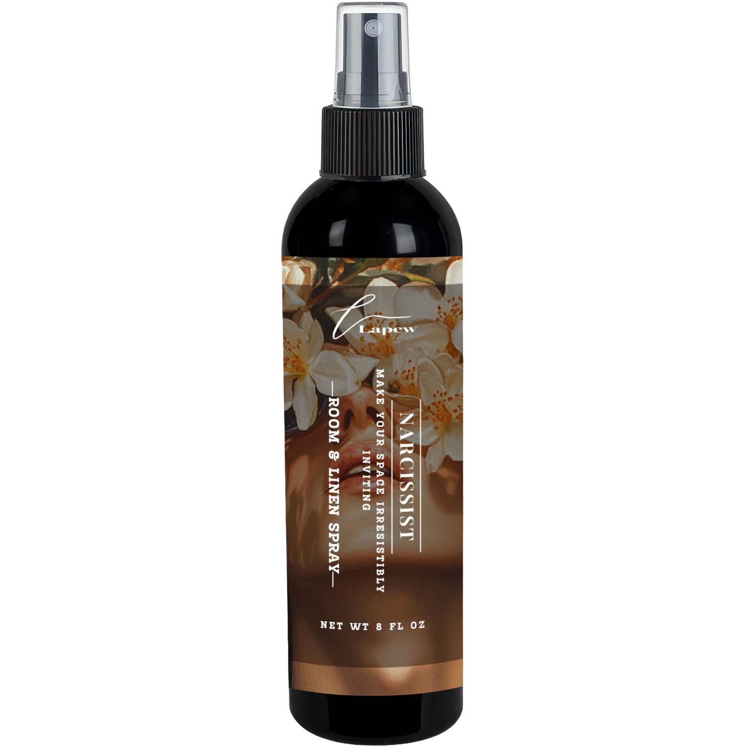 Elevated Home Fragrance: Lapew Narcissist, a refined room & linen spray and air freshener. Long-lasting, eliminates odors, freshens fabrics for an inviting home.
