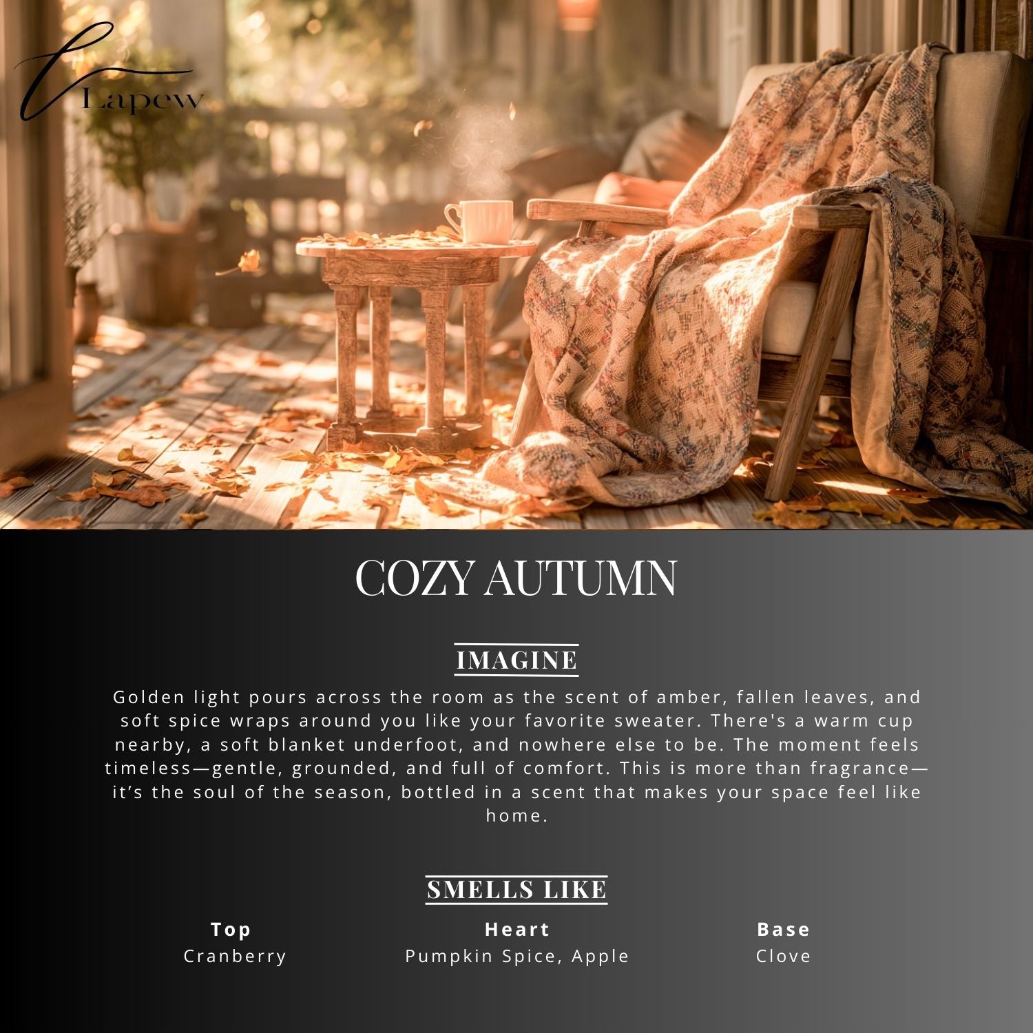 Golden light pours across the room as the scent of amber, fallen leaves, and soft spice wraps around you like your favorite sweater. There's a warm cup nearby, a soft blanket underfoot, and nowhere else to be. The moment feels timeless—gentle, grounded, and full of comfort. This is more than fragrance—it’s the soul of the season, bottled in a scent that makes your space feel like home.