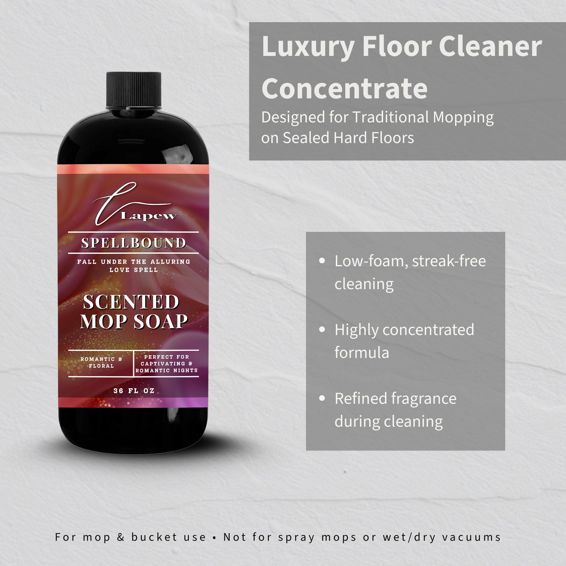 Bring high-end cleanliness and style to your floors with our premium scented mop soap. Elevate everyday cleaning with sophisticated fragrances and powerful performance.