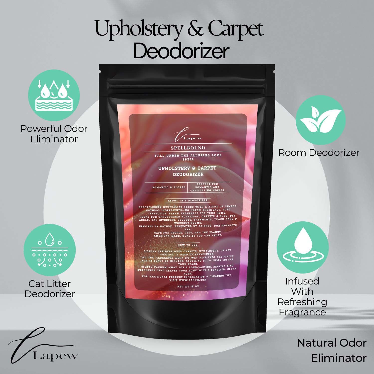 Lightly sprinkle over carpets, upholstery, or any surface in need of refreshing.
