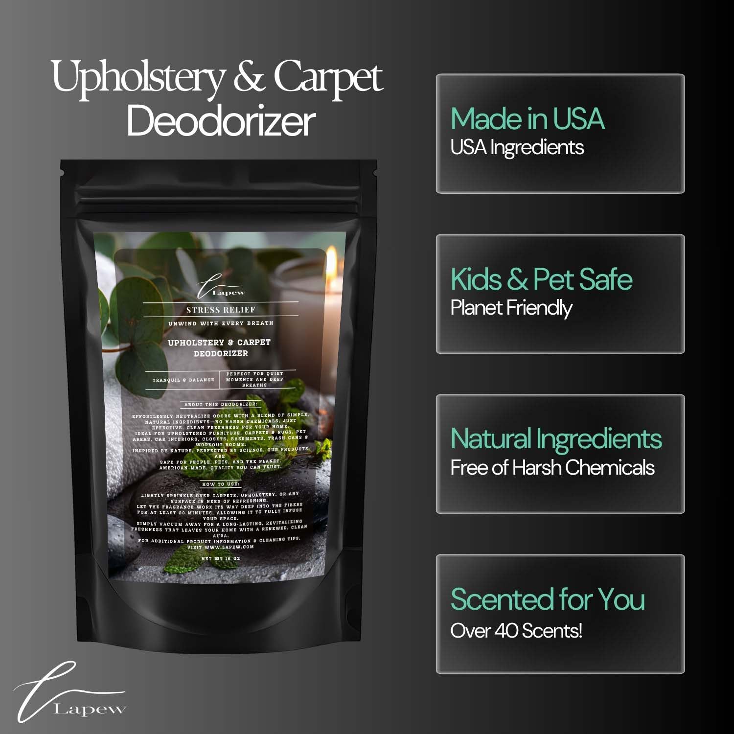 • Lightly sprinkle over carpets, upholstery, or any surface in need of refreshing.